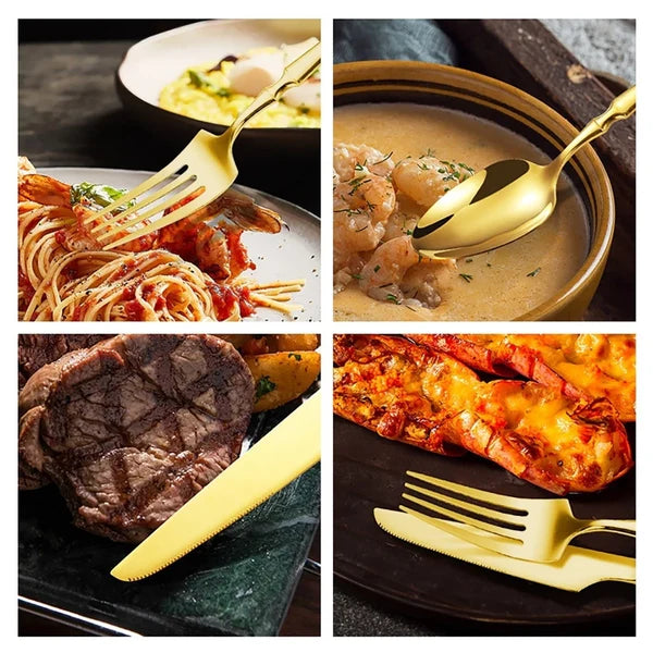 Mude suas refeições com nosso conjunto de talheres delicado de 24 peças, que é projetado elegante e durável. Feito de aço inoxidável de alta qualidade, este conjunto garante qualidade e resistência, perfeito para jantares especiais e uso diário.