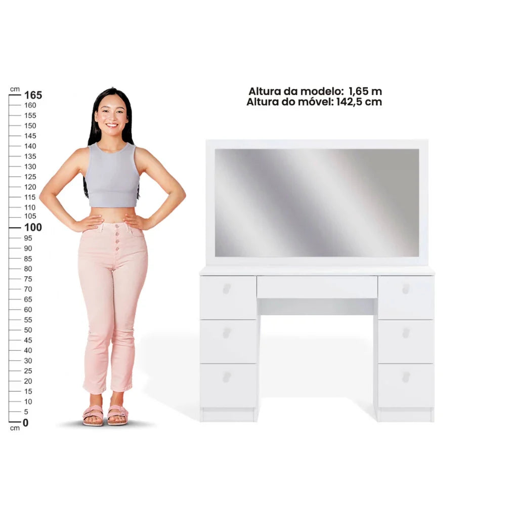 Sinta-se como uma estrela de cinema! A espetacular Penteadeira com Iluminação Camarim Ditália traz um estilo limpo e moderno para o seu quarto. Fabricada em madeira MDP UV com bordas melamínicas brancas, a penteadeira possui 7 gavetas onde você pode guardar tudo o que precisa para o seu dia a dia. De joias a documentos, seu ambiente ficará muito mais organizado e lindo. A base superior da mesa é ideal para guardar lembranças e recordações, trabalhar no seu notebook e divertir-se muito no espelho. Sinta-se em um camarim!